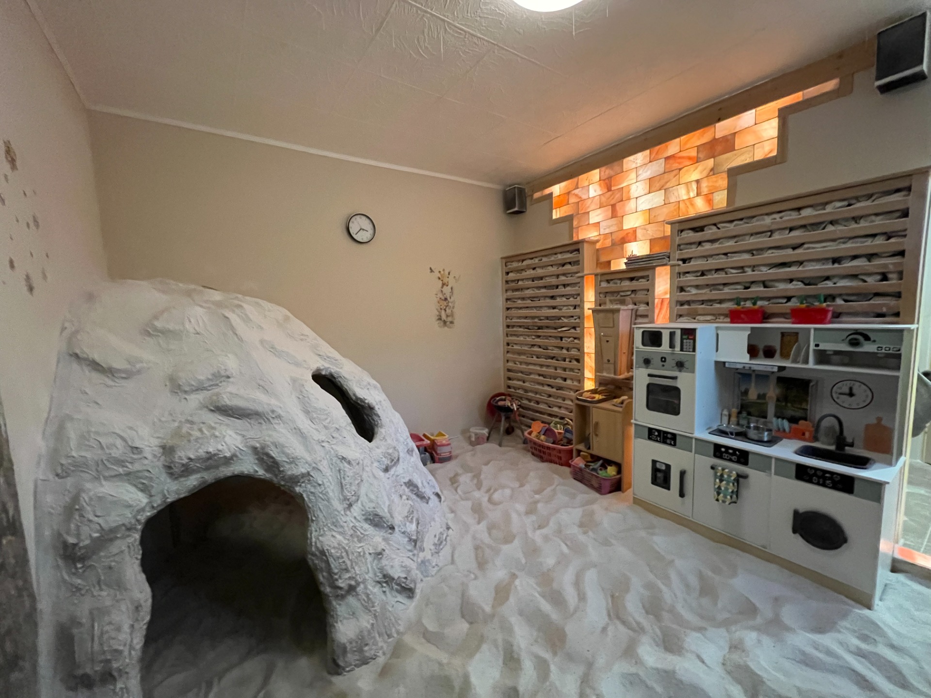 Mindkét sószoba sógenerátorral felszerelt, emellett rengeteg társasjáték, játszókonyha, traktorok, kisautók, játékbabák várják a gyerekeket, mert játszva gyógyulni a legjobb!